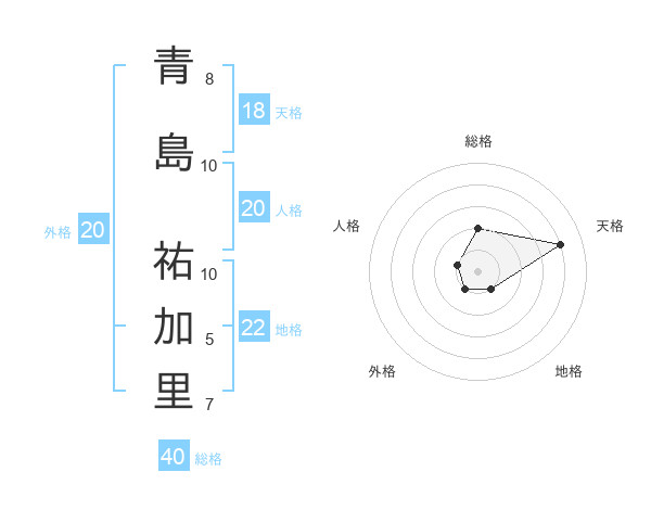 青島 祐加里さんの天格は18画の4点!