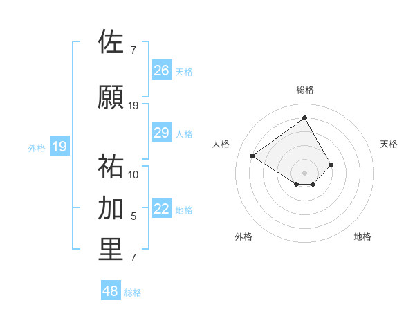 佐願 祐加里さんを姓名の画数から五運を鑑定