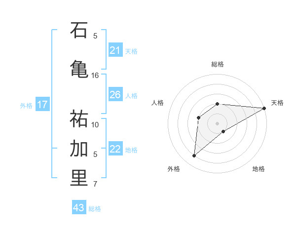 石亀 祐加里さんを姓名の画数から五運を鑑定