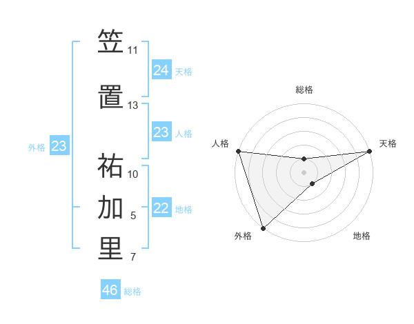笠置 祐加里さんを姓名の画数から五運を鑑定