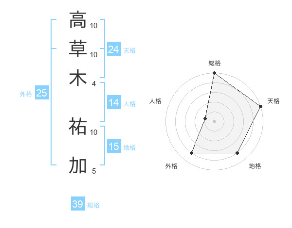 高草木 祐加さんを姓名の画数から五運を鑑定