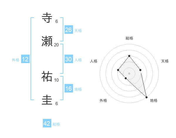 寺瀬 祐圭さんの天格は26画の2点!