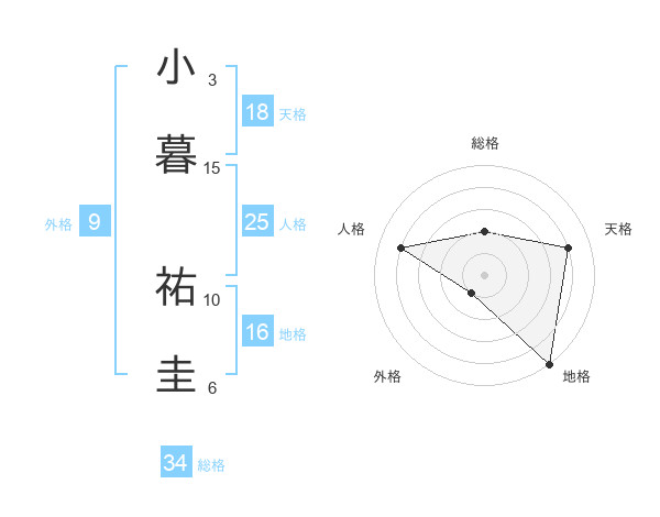 小暮 祐圭さんを姓名の画数から五運を鑑定