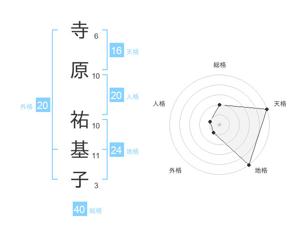 寺原 祐基子さんを姓名の画数から五運を鑑定