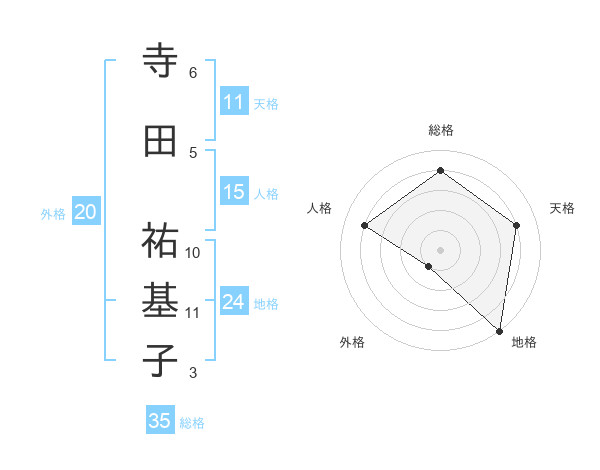寺田 祐基子さんを姓名の画数から五運を鑑定