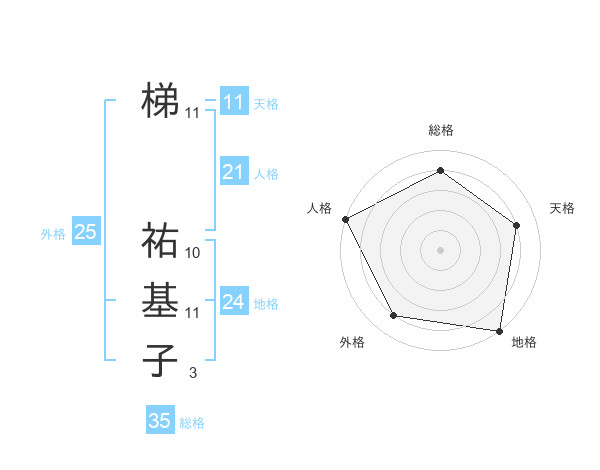 梯 祐基子さんを姓名の画数から五運を鑑定