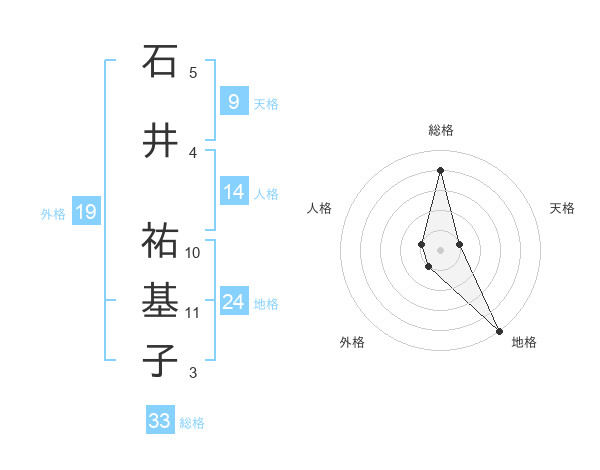 石井 祐基子さんの総格は33画の4点!