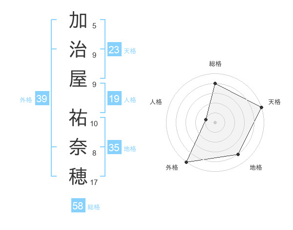 加治屋 祐奈穂さんを姓名の画数から五運を鑑定