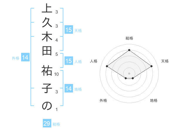 上久木田 祐子のさんを姓名の画数から五運を鑑定