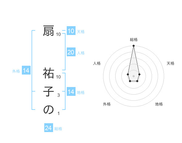扇 祐子のさんを姓名の画数から五運を鑑定