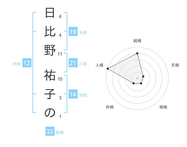 日比野 祐子のさんを姓名の画数から五運を鑑定