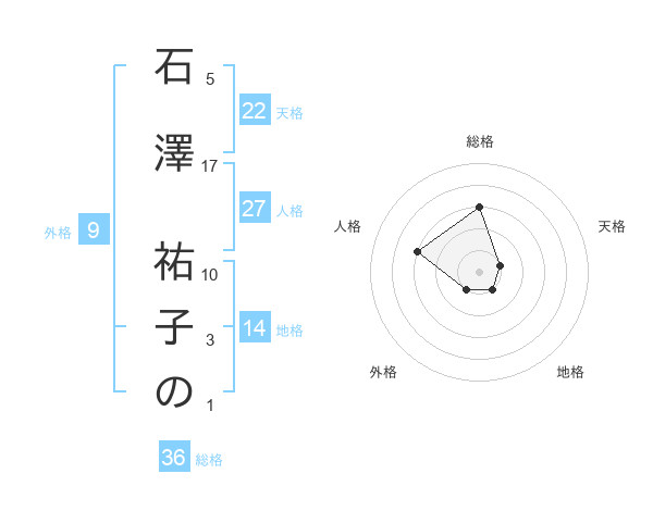 石澤 祐子のさんを姓名の画数から五運を鑑定