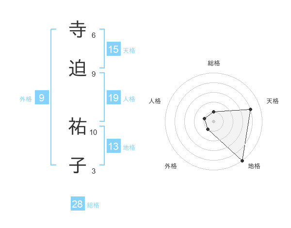 寺迫 祐子さんの天格は15画の4点!