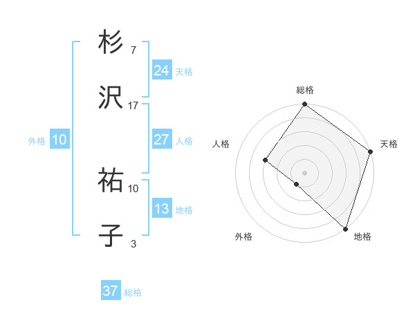 杉沢 祐子さんの総格は37画の5点!