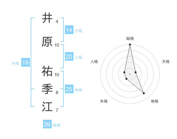 井原 祐季江さんの総格は39画の5点!