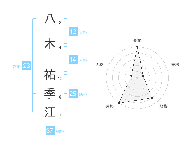 八木 祐季江さんの総格は37画の5点!