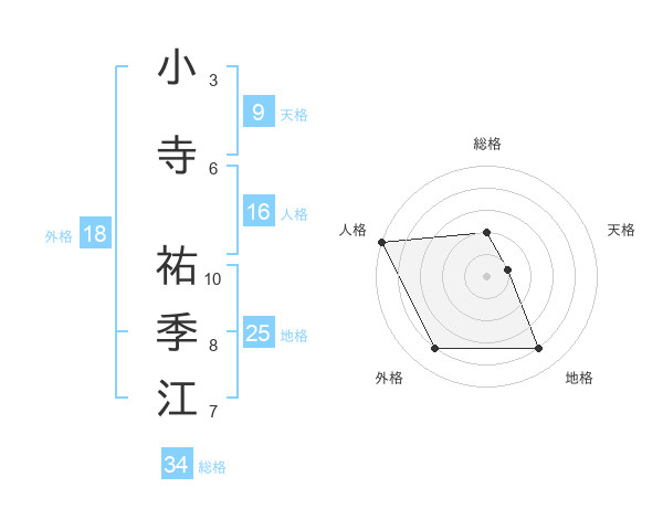 小寺 祐季江さんを姓名の画数から五運を鑑定