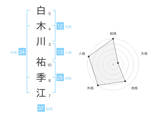 白木川 祐季江さんを姓名の画数から五運を鑑定