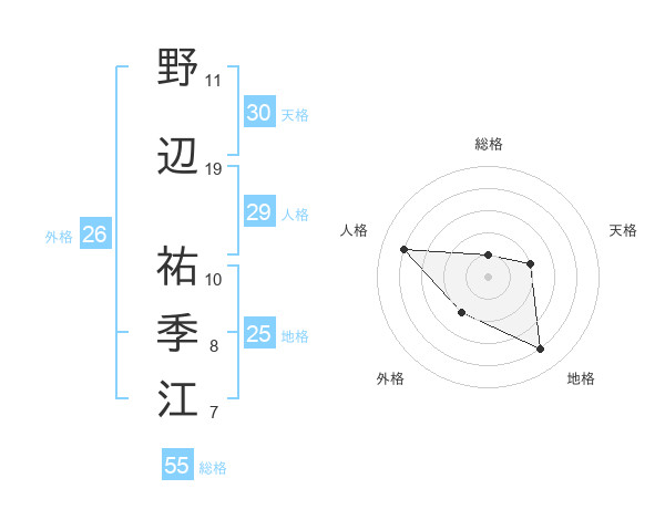 野辺 祐季江さんの総格は55画の1点!