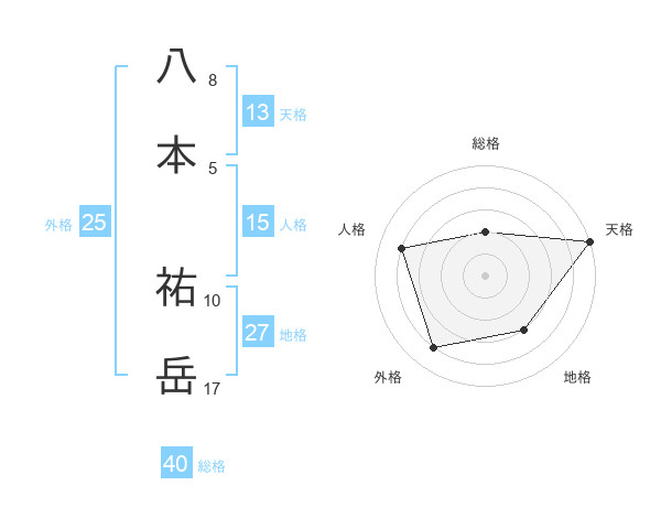 八本 祐岳さんの天格は13画の5点!