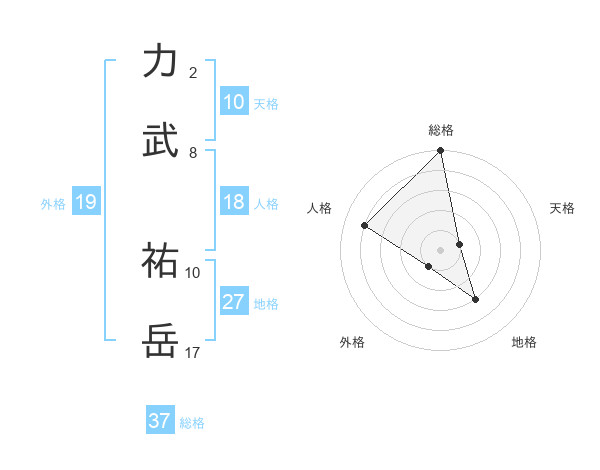 力武 祐岳さんの総格は37画の5点!