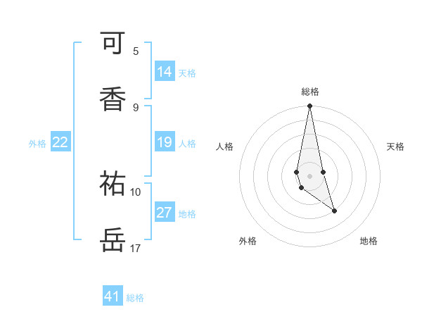 可香 祐岳さんを姓名の画数から五運を鑑定