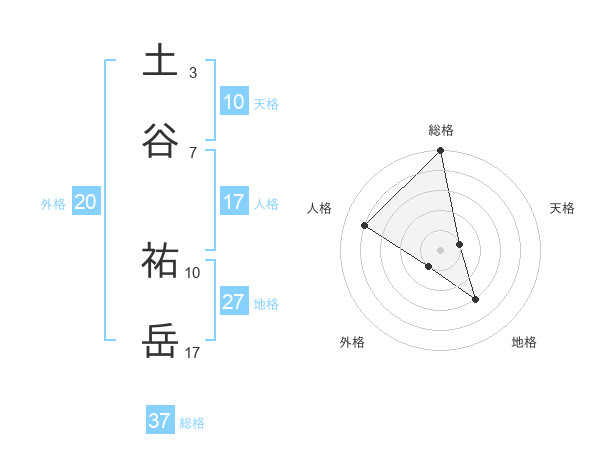 土谷 祐岳さんの総格は37画の5点!