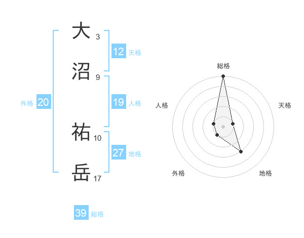 大沼 祐岳さんを姓名の画数から五運を鑑定
