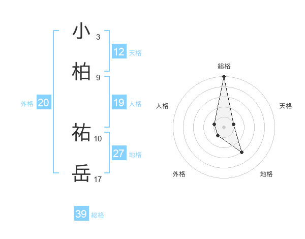 小柏 祐岳さんの総格は39画の5点!