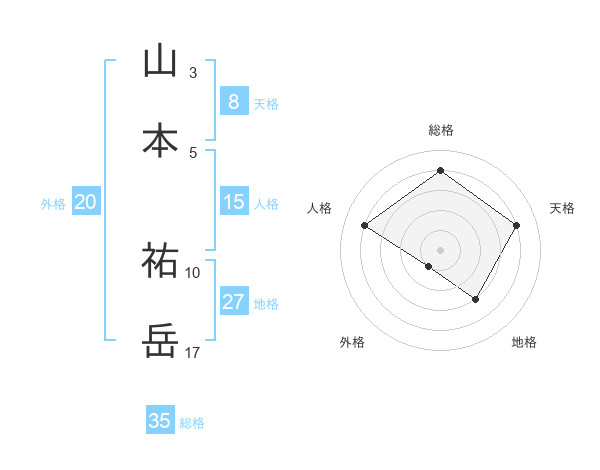 山本 祐岳さんを姓名の画数から五運を鑑定