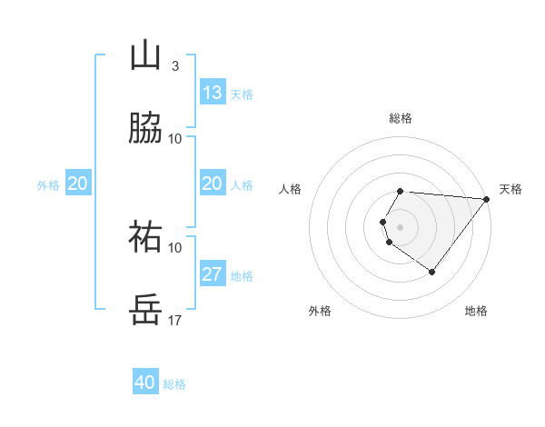 山脇 祐岳さんを姓名の画数から五運を鑑定