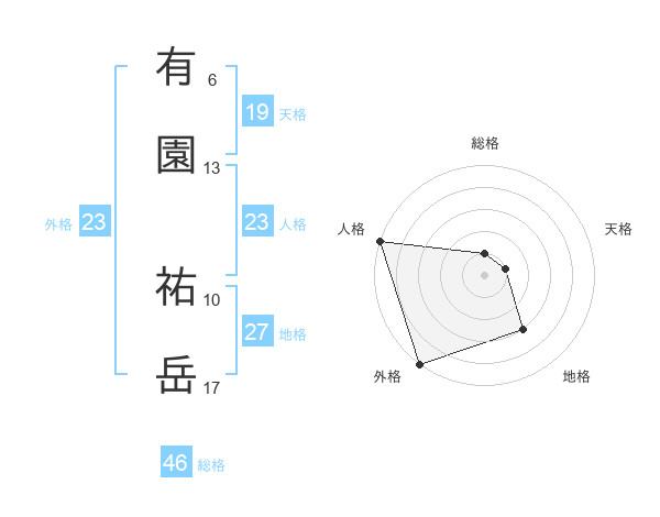 有園 祐岳さんを姓名の画数から五運を鑑定