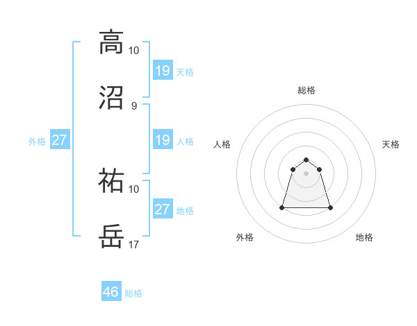 高沼 祐岳さんの総格は46画の1点!