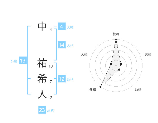 中 祐希人さんの総格は23画の5点!