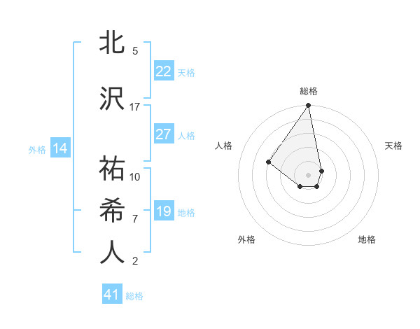 北沢 祐希人さんの総格は41画の5点!