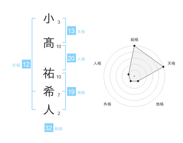 小髙 祐希人さんを姓名の画数から五運を鑑定