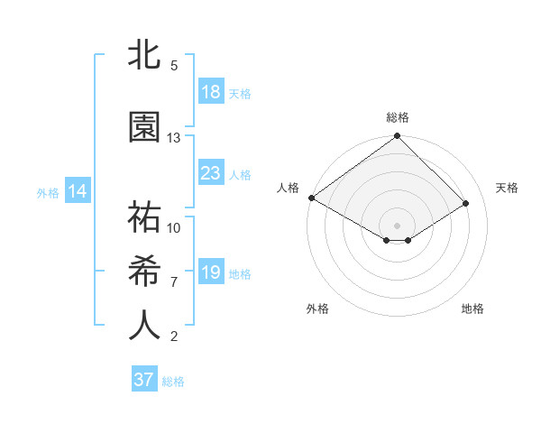 北園 祐希人さんを姓名の画数から五運を鑑定