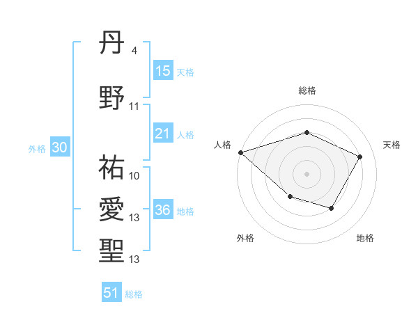 丹野 祐愛聖さんを姓名の画数から五運を鑑定