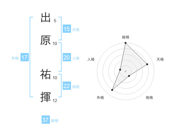 出原 祐揮さんを姓名の画数から五運を鑑定