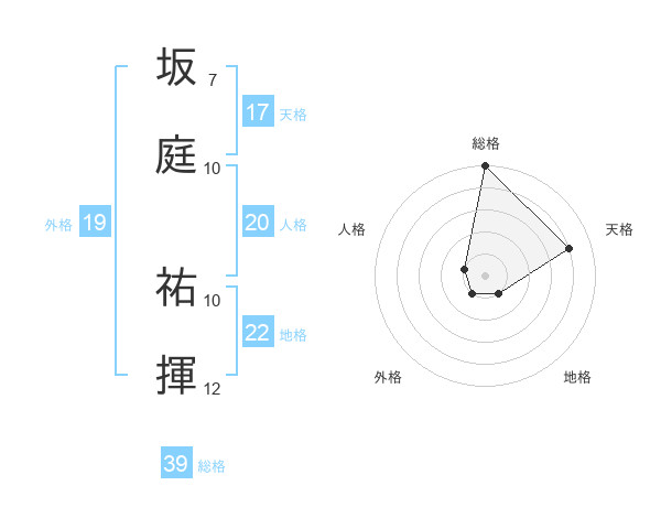 坂庭 祐揮さんを姓名の画数から五運を鑑定