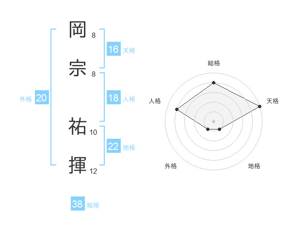岡宗 祐揮さんの総格は38画の4点!