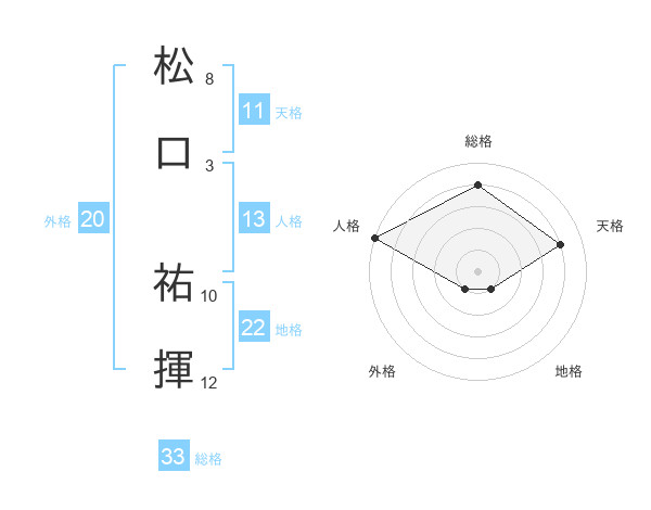 松口 祐揮さんの総格は33画の4点!