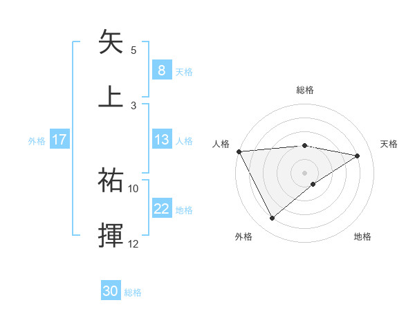 矢上 祐揮さんを姓名の画数から五運を鑑定