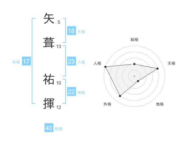 矢葺 祐揮さんを姓名の画数から五運を鑑定