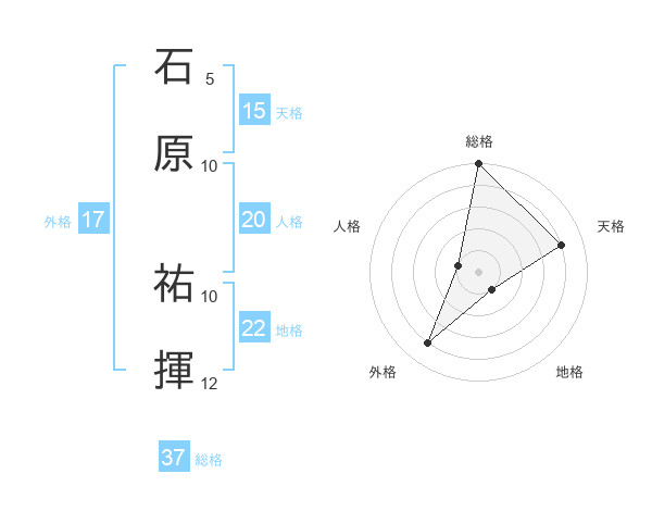 石原 祐揮さんの総格は37画の5点!