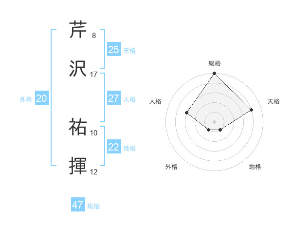 芹沢 祐揮さんを姓名の画数から五運を鑑定