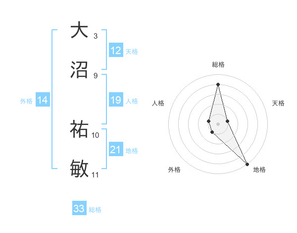 大沼 祐敏さんを姓名の画数から五運を鑑定