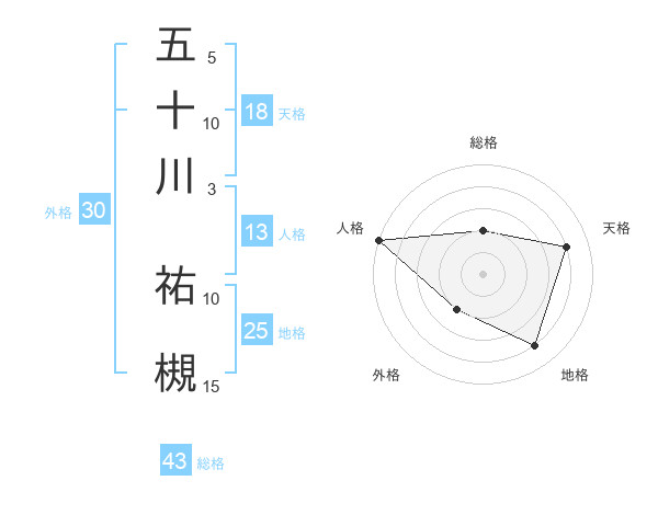 五十川 祐槻さんの総格は43画の2点!