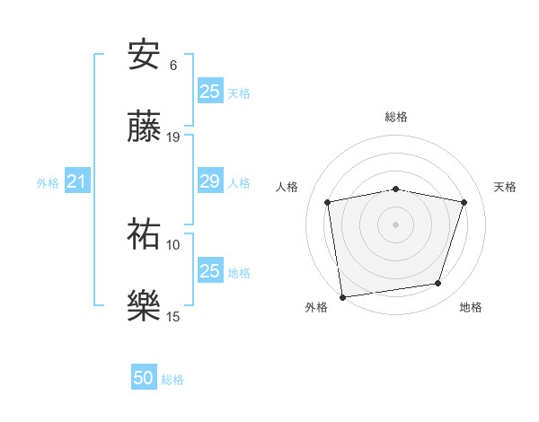 安藤 祐樂さんの総格は50画の2点!