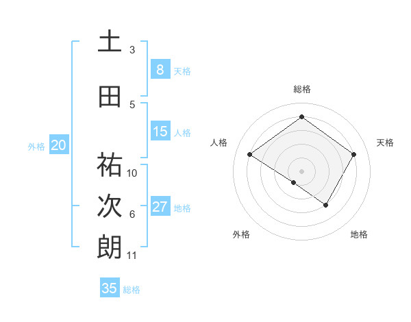 土田 祐次朗さんを姓名の画数から五運を鑑定